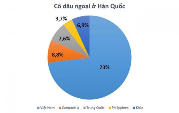 Theo báo cáo mới nhất của bộ Gia đình và Bình đẳng giới công bố hôm 28/2, hơn 73% số phụ nữ nước ngoài làm dâu tại Hàn Quốc trong thời gian từ 2014-2016 là người Việt Nam. Hiện có khoảng 40.000 phụ nữ Việt Nam đang làm dâu tại Hàn Quốc.