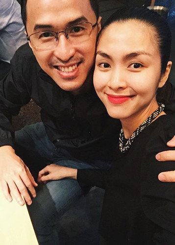 Bên cạnh đó, gu thời trang của Hà Tăng cũng khá đồng điệu. Trong ngày Tết, Hà Tăng diện áo dài màu vàng còn ông xã diện áo dài xanh.