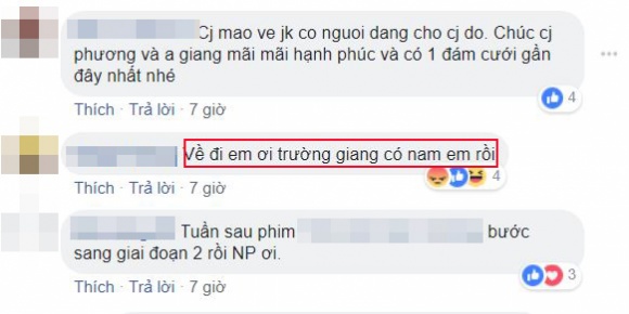Bên dưới phần bình luận có rất nhiều người động viên hoặc "bóng gió": "Về đi em ơi, Trường Giang có Nam Em rồi", nhưng Nhã Phương vẫn giữ thái độ im lặng.