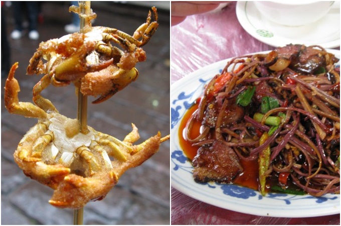 Bánh tôm và bánh cua lăn bột chiên là hai món ăn vặt phải thử khi đến Phượng Hoàng, giá khoảng 5 tệ/cái (khoảng 18.000 đồng). Lẩu cá, bún bò cũng là hai món ăn trứ danh ở đây, thích hợp ăn vào mùa đông, khi trời đổ tuyết lạnh buốt bởi đồ ăn ở Phượng Hoàng khá cay và nóng. Nên dặn đầu bếp trước khi ăn nếu bạn không ăn cay được. Để biết chất lượng món ăn, bạn có thể sử dụng app meituan để kiểm tra trước khi đến. Đặc biệt, trái cây ở đây rất tươi và ngon.