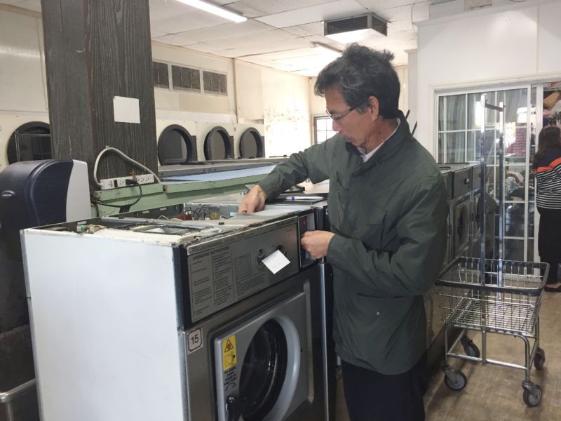 “Chủ không cần có mặt thường xuyên, chỉ cần một tuần đến vài lần để kiểm soát máy móc, lấy tiền từ máy về, cho thêm hàng hóa vào mấy cái máy tự động bán bột giặt, thuốc tẩy… là xong, bởi vì trong tiệm hầu như tất cả đều sử dụng máy móc tự động, khách cứ thế mà tự giặt lấy đồ của mình,” ông nói.