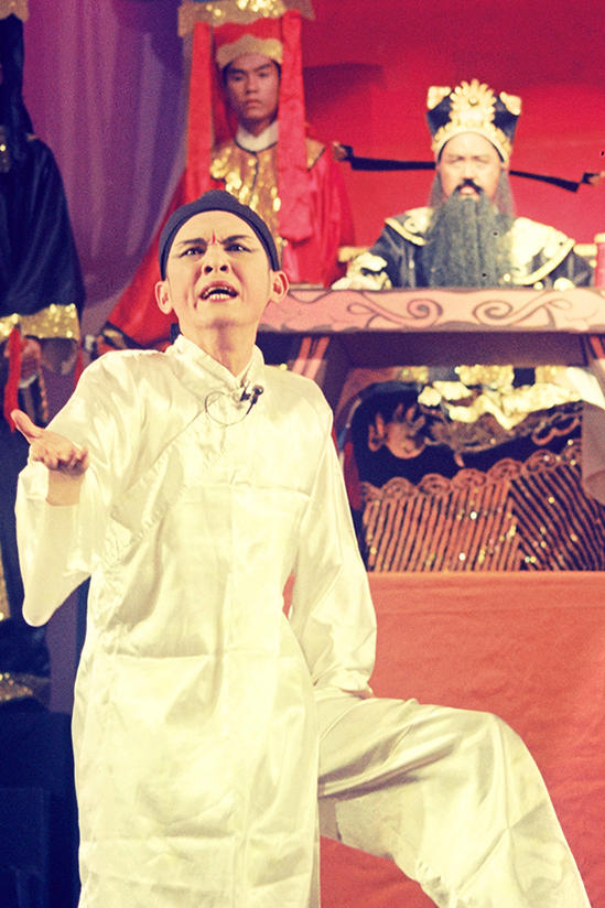NSƯT Hữu Châu diễn vai Trần Thế Mỹ - nhân vật gắn liền với giai thoại Bao công xử án ở vở "Đoạn trường" - quay tại Nhà hát Hòa Bình.