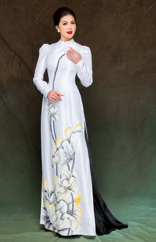 Áo dài in họa tiết hoa sen luôn là cảm hứng cho nhiều nhà thiết kế sáng tạo.
