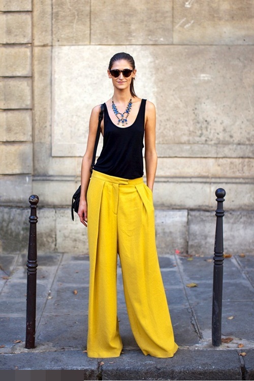 Áo ba lỗ khoét cổ rộng là món đồ thứ hai dành cho các nàng ngực nhỏ. Kết hợp với dây chuyền bản lớn, chủ nhân sẽ gây ấn tượng với vẻ cá tính, thanh lịch.