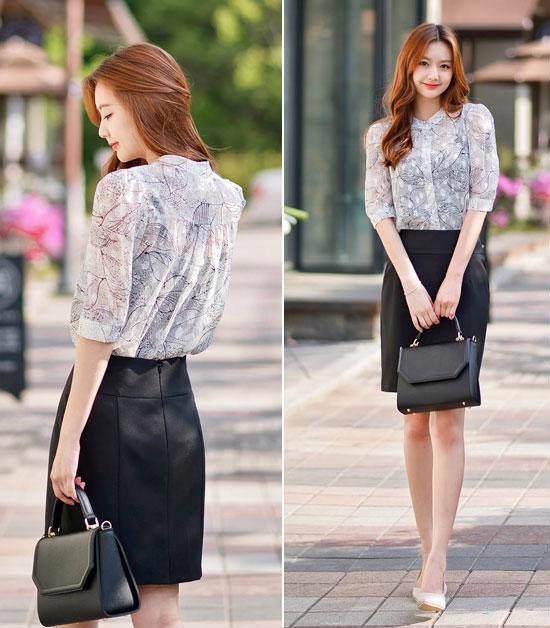 Cách kết hợp này hoàn toàn mới lạ và cá tính, chân váy đen với dáng gọn gàng bằng những chiếc áo thun mỏng oversized cùng những chiếc túi xách xinh, đôi giày cao gót dịu dàng nổi bật để khiến bạn gái thật ấn tượng nơi công sở.
