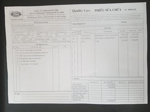 Khách kiện Ford Việt Nam vì 5 lần đi bảo hành không hết lỗi. Chủ xe đưa xe đi bảo hành nhưng lỗi không được khắc phục hoàn toàn. Anh phải biết cả thư khiếu nại gửi tới hãng xe Ford ở Việt Nam.