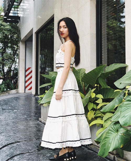 Để tạo nên diện mạo hoàn chỉnh, các sao Việt cần để ý chọn những món có chung phong cách để diện cùng nhau. Chiếc váy "bánh bèo" của Bảo Thanh hoàn toàn không hợp với đôi sneakers Fila ngổ ngáo.