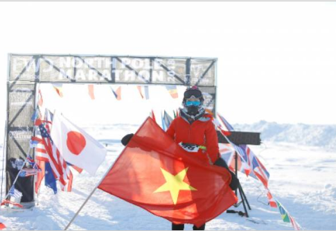 Tăng Minh Nguyệt là người gốc Việt đầu tiên chinh phục 42km dưới cái lạnh âm 37 độ Ctại cuộc thi Marathon Bắc Cực. Cô giương cao quốc kỳ Việt Nam tại đấu trường khắc nghiệt này.