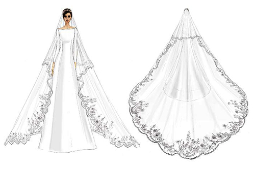 Váy cưới của công nương Meghan Markle được làm thế nào? Riêng phần khăn voan tốn mất 500 giờ. Đội ngũ làm váy cưới mất 3 tháng để hoàn thiện bộ váy này.