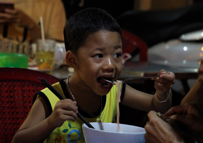 “Quán ở ngoại thành vậy chứ người ở trung tâm kéo ra ăn nhiều lắm, quận nào cũng có. Hai ngày cuối tuần là đông nhất, có khi làm không kịp nghỉ tay luôn”, vừa thoăn thoắt múc nước dùng vào tô cho khách anh vừa hào hứng kể.