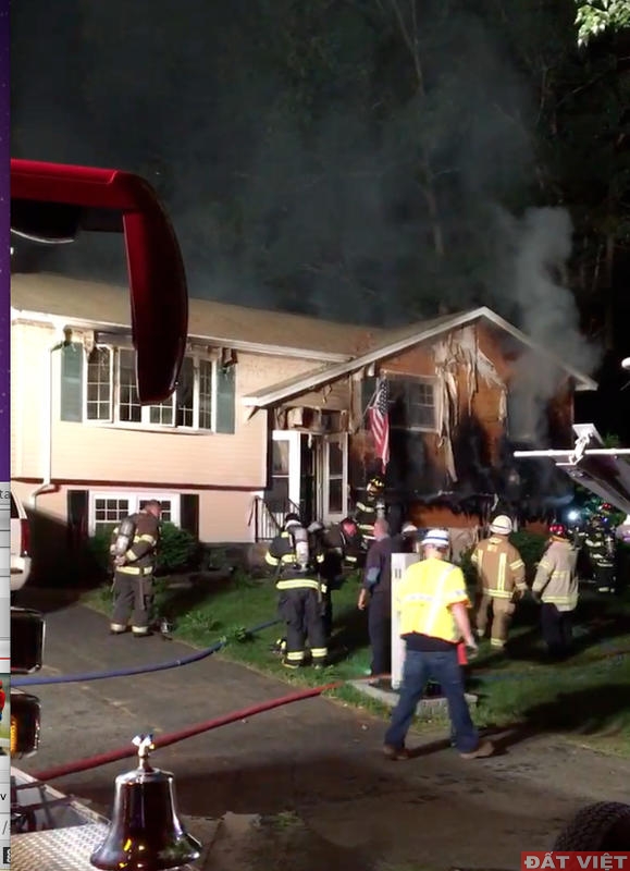 Nhà bị cháy vào đêm Chủ Nhật, 10 tháng 6, 2018. (Rick Ferreira/Boston Herald)