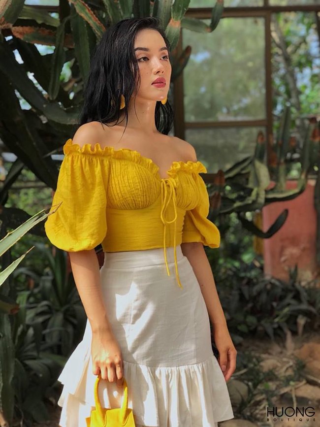 Một trong những thiết kế khác có kiểu dáng bo chun nhưng dạng croptop, mang lại sự trẻ trung, có chút cổ điển cho người mặc.