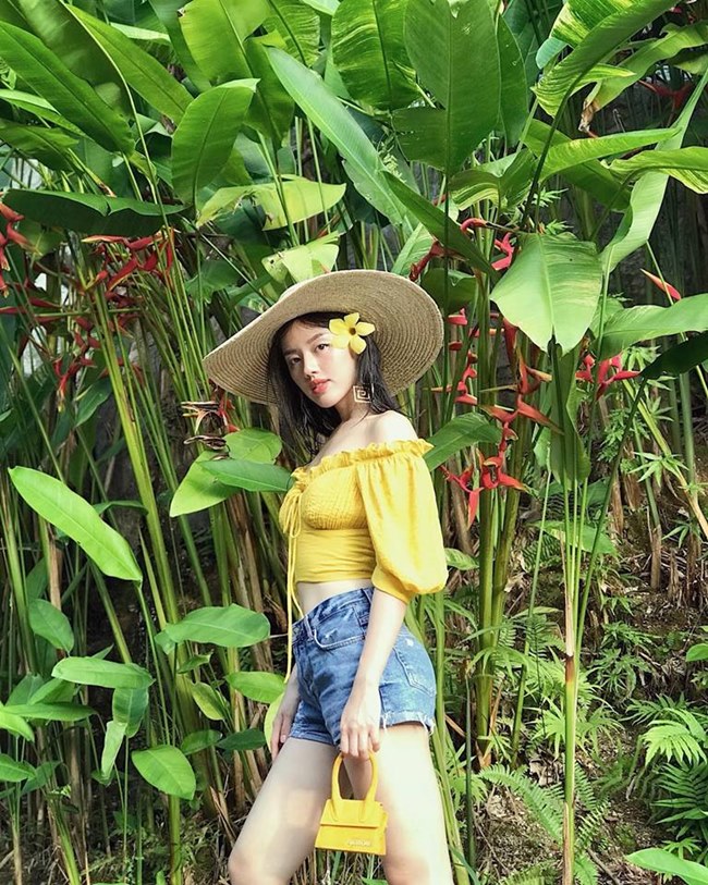 Hè năm nay, có vẻ như tất cả các xu hướng váy áo của phái đẹp đều xoay quanh thiết kế cổ vuông, tay phồng. Khánh Linh nhanh nhạy bắt trend và diện thiết kế này dù "lên rừng hay xuống biển'.