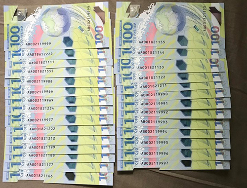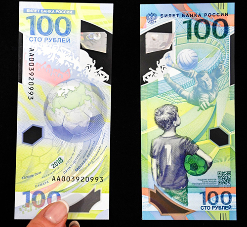 Tờ 100 rúp mới do Ngân hàng Trung ương Nga (RCB) phát hành nhân dịp lần đầu đăng cai giải bóng đá thế giới, có số lượng là 20 triệu tờ. Với giá gốc chỉ tương đương 40.000 đồng, mặt hàng này gây sốt đến mức nhiều ngân hàng tại Nga không còn để bán, trong khi giá tại chợ đen được đẩy lên mức ngất ngưởng.