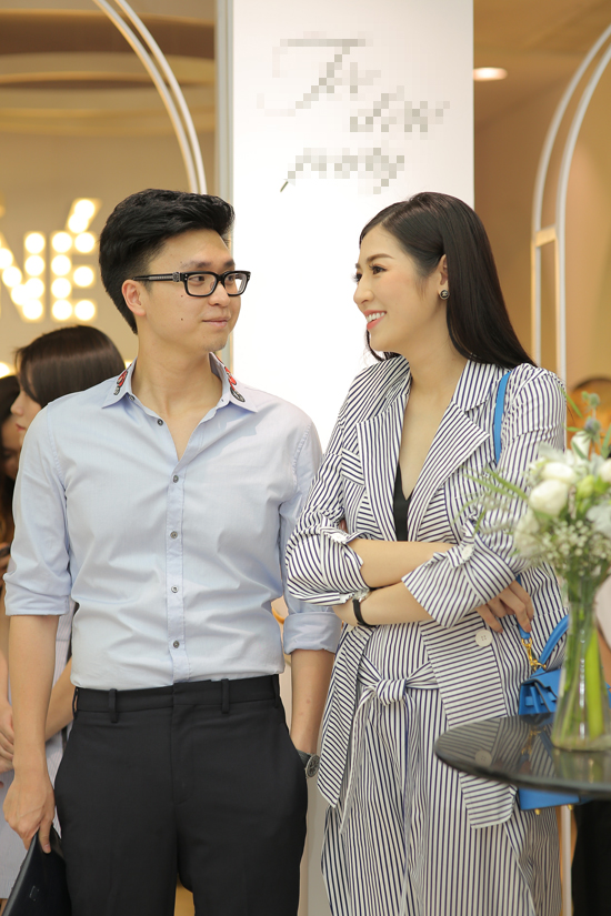 Á hậu Tú Anh cùng chồng sắp cưới lần đầu sóng đôi công khai đến một sự kiện thời trang tại Hà Nội. Ảnh: Linh Nguyễn