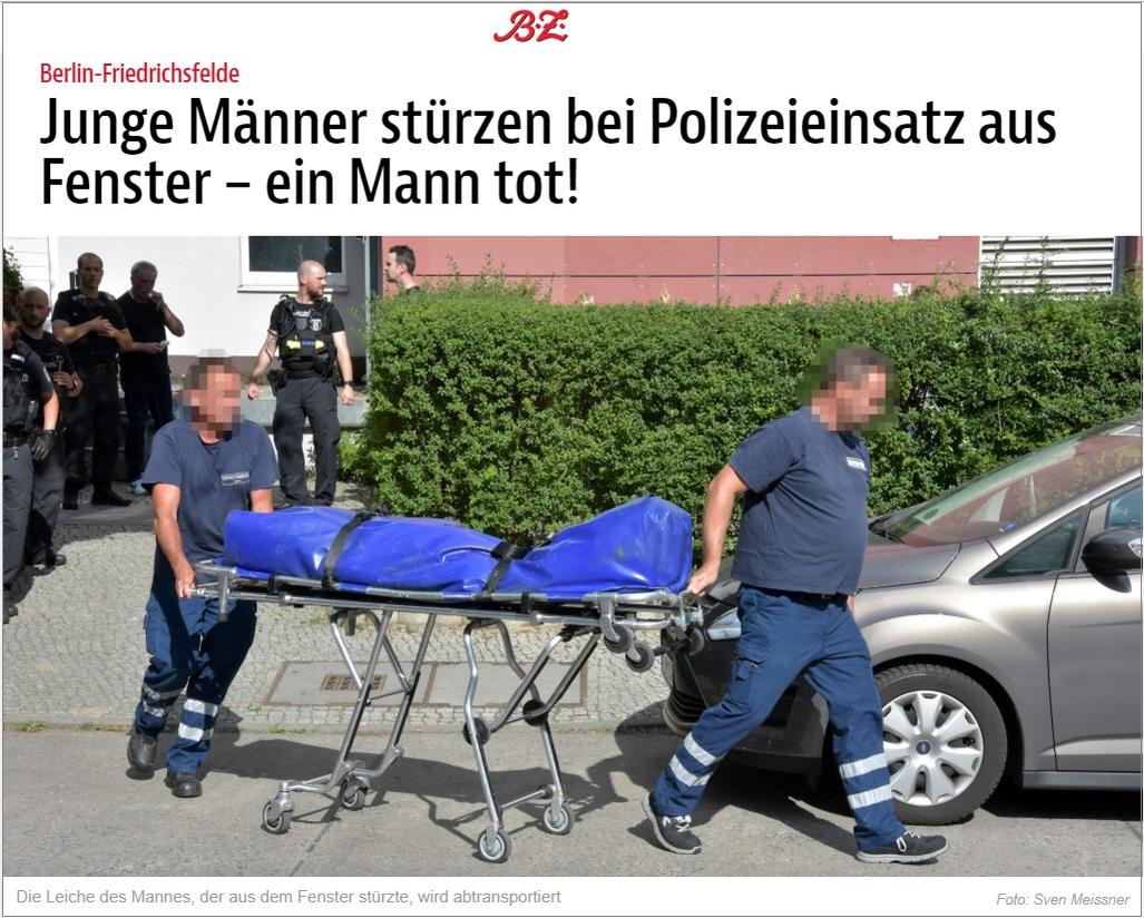 Cảnh sát Đức chở xác một người Việt nam bị chết khi nhảy từ tầng 5 xuống đất hôm 29/06/2018 tại Berlin.