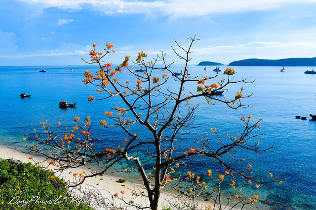 Nếu bạn muốn đến nơi hoang sơn mà lãng mạn, hãy đến Cù Lao Càm. Mùa này bạn sẽ được thưởng thức hoa ngô đồng. Hoa ngô đồng ở đay có vẻ rất riêng không giống những nơi khác.