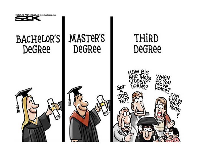 Còn tiền? Ở Mỹ khi vào đại học, nếu gia đình nghèo thì được chính phủ trợ cấp. Thường thì số tiền trợ cấp là đủ để đóng học phí và sách vở … có khi còn dư tí xíu ăn kẹo. Ngoài trợ cấp ra, chúng tôi còn có thể mượn tiền với sự bảo đảm của chính phủ. Số nợ không cần trả cho tới khi không còn đi học. Lúc đó, vì ham chơi, nên tôi đã lún nợ rất nhiều. Mang tiếng là nợ tiền học, nhưng thật ra là nợ vì “ăn chơi”. Nếu như ở một sinh viên khác, họ có thể đi làm bán thời gian thêm là đủ tiền chi phí sinh hoạt hàng tháng ở mức tối thiểu. Còn tôi, tôi đã hoang phí vào những cuộc du lịch xa gần, mua sắm quần áo đắt tiền. Nên sau khi ra trường, tôi đã vướng một số nợ mà sau 10 năm đi làm vẫn chưa trả xong.