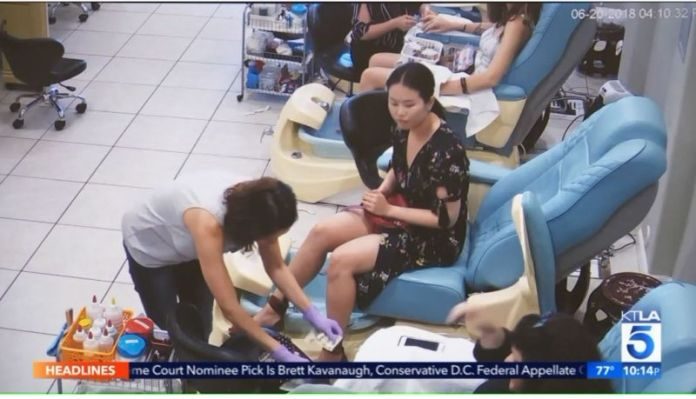 Cô gái này vào tiệm nail ở khúc 12100 đường Ventura Boulevard trưa Thứ Tư 20 Tháng Sáu để được làm móng tay và móng chân, theo sở cảnh sát Los Angeles.