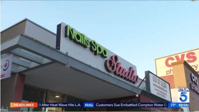 Tiệm naii ở Studio City, nơi xảy ra vụ trộm nhẫn. (Hình: KTLA 5)