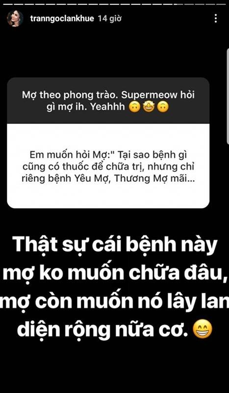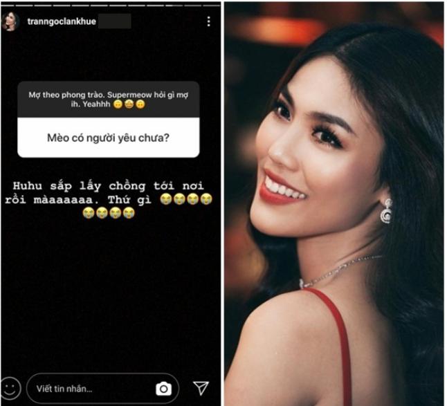 Mới đây, khi được một fan hài hước hỏi xoáy "Mèo có người yêu chưa?", chân dài họ Trần lanh lợi đáp xoay: "Huhu, sắp lấy chồng tới nơi rồi mà. Thứ gì...".