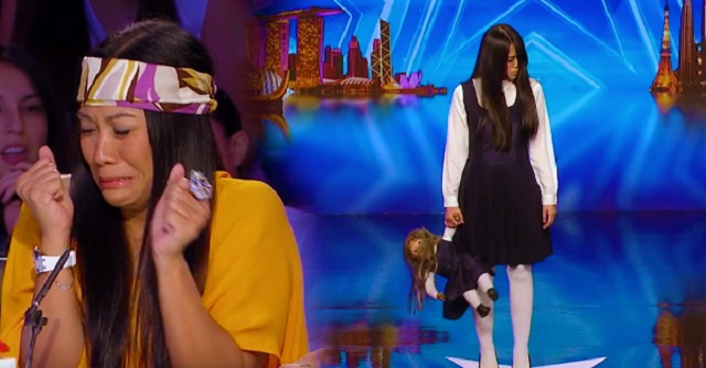 Và rồi cô gái đầm đen ma quái cùng mái tóc dài che hết khuôn mặt xuất hiện sau khi làm vỡ chiếc hộp bí ẩn khiến khán giả thót tim. Chưa dừng lại ở đó, cô gái đầm đen dần dần bước lại gần giám khảo Anggun khiến nữ giám khảo hoảng sợ chạy trốn.