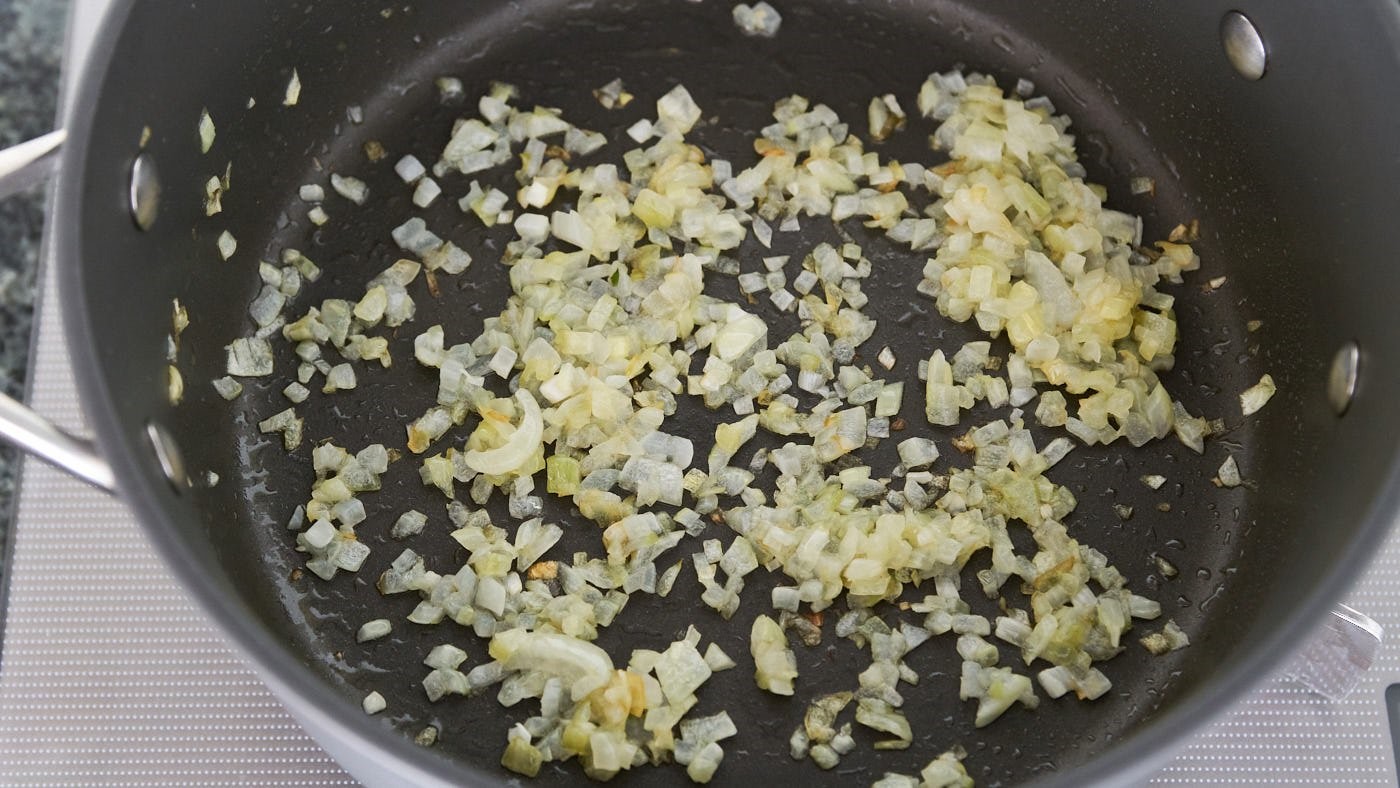 Cho bơ và phần hành tây đã cắt hạt lựu vào nồi. Xào cho đến khi hành tây chuyển màu hơi xém nâu. Bước này để giúp món súp có được vị ngọt tự nhiên.
