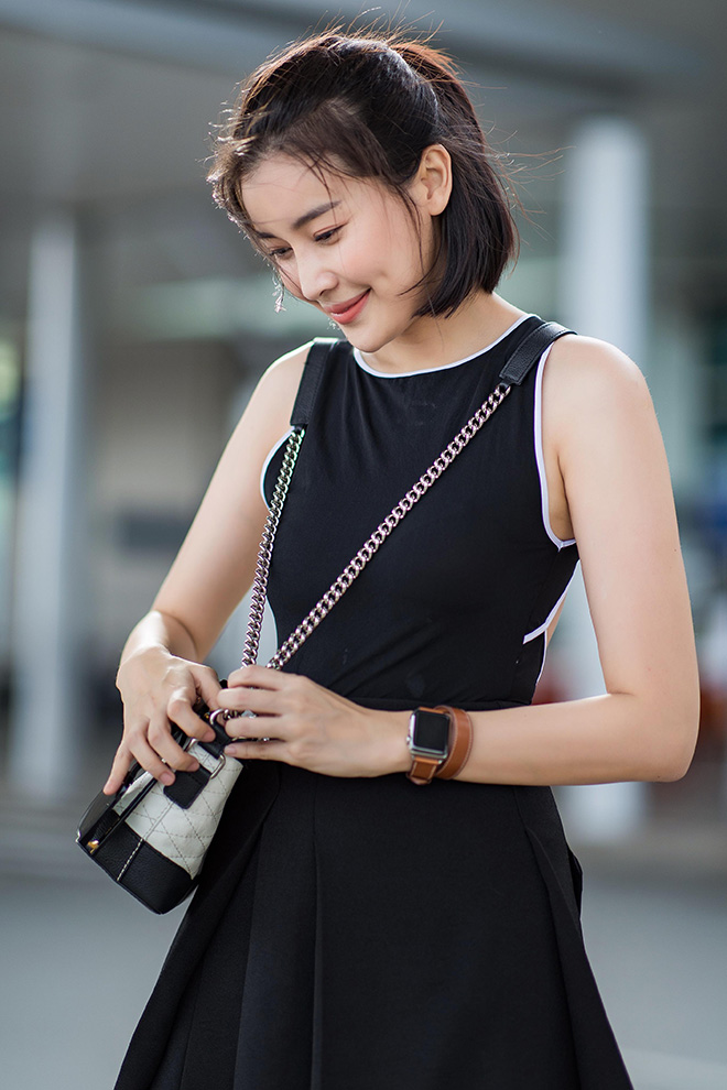 Người đẹp mặc nguyên set đen khoe làn da trắng hồng vóc dáng thon thả