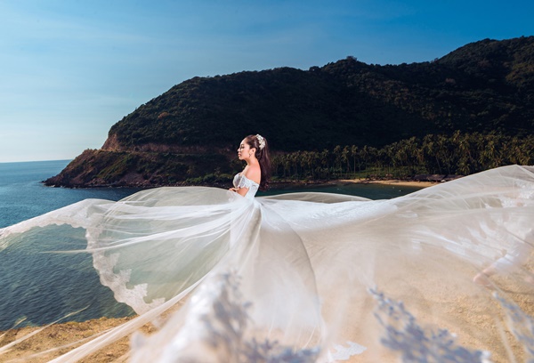 Bộ ảnh cưới của nàng hậu 9x được ekip lên ý tưởng và thực hiện trong thời gian khá dài. Với ý tưởng bay bổng khác lạ chính vì thế concept đưa ra sẽ chọn địa điểm là những bãi biển, hòn đảo đẹp hoang sơ với phong cảnh thần tiên. Sau thời gian cất nhắc, ê kip của người đẹp họ Đặng đã lựa chọn đảo Hòn Sơn và Nam Du để thực hiện bộ ảnh.