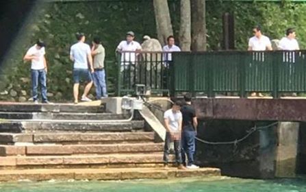 Đoàn du khách Việt tiểu bậy tại hồ Nhật Nguyệt (Nam Đầu, Đài Loan) và bị đưa lên báo cũng như các mạng xã hội nước này. Ảnh: Apple daily.