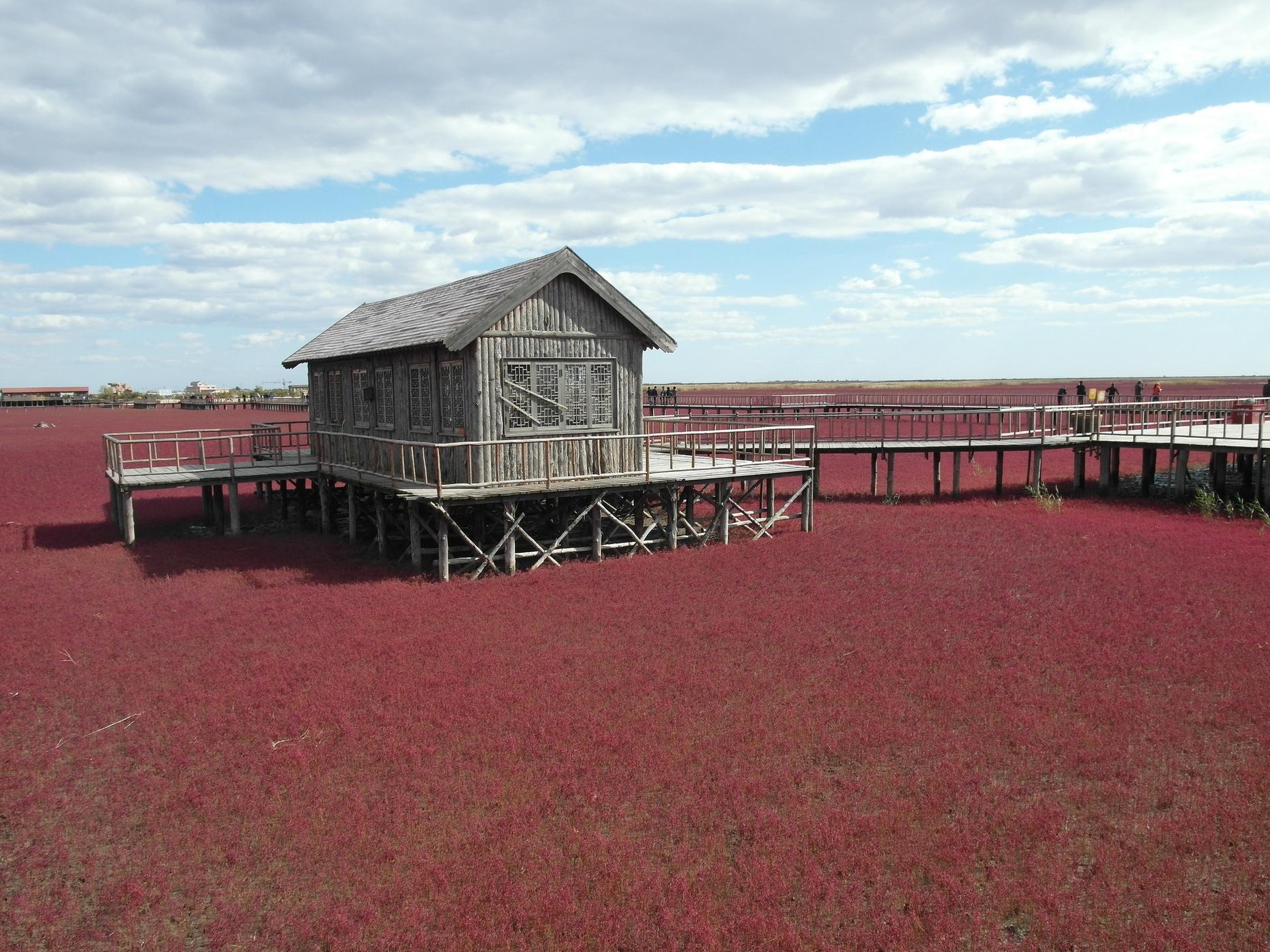 Red Beach nằm trong vùng đầm lầy và sậy cao nhất thế giới. Nó có màu đỏ sống động và không bị bao phủ trong cát. Màu sắc là từ một loại cỏ biển có tên Sueda, loại cỏ này giữ màu xanh lá cây trong suốt mùa hè và chuyển sang màu đỏ vào mùa thu.