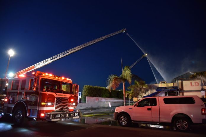 Vụ hỏa hoạn nhìn từ phía đường Bolsa. (Hình: Dân Huỳnh/Người Việt)
