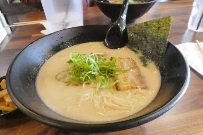 Một trong những ăn Nhật lúc nào cũng trong trào lưu, khiến nhiều người muốn ăn thử là mì ramen. Ramen có nhiều loại nước súp nấu từ gà hay hải sản, nhưng ngon nhất vẫn là nước xương heo. Nước súp nấu từ xương heo được gọi là “tonkatsu,” xuất xứ từ tỉnh Fukuoka, thuộc đảo Kyushu. Xương heo được nấu hơn 10 tiếng đồng hồ, có màu trắng đục như sữa.