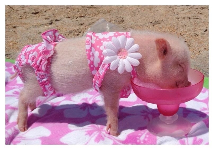 Thích thời trang không phải là cái tội. Con lợn tuyệt vời này không bao giờ rời khỏi nhà mà không mặc váy màu hồng và đeo vòng ngọc trai ưa thích.