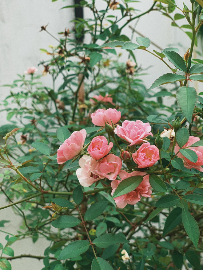 Một khóm hồng khoe sắc. Nhìn những cây hoa, có thể thấy khu vườn của căn biệt thự được chăm sóc rất kỹ lưỡng và có gu.