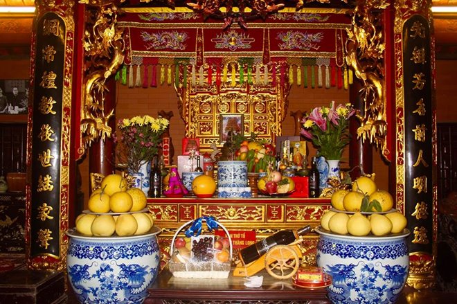 Ở gian thờ chính, "vua hài đất Bắc" bày biện mâm ngũ quả rất đẹp mắt. Nhiều người hâm mộ không khỏi xuýt xoa, trầm trồ khen ngợi sự khéo tay của danh hài sinh năm 1980.