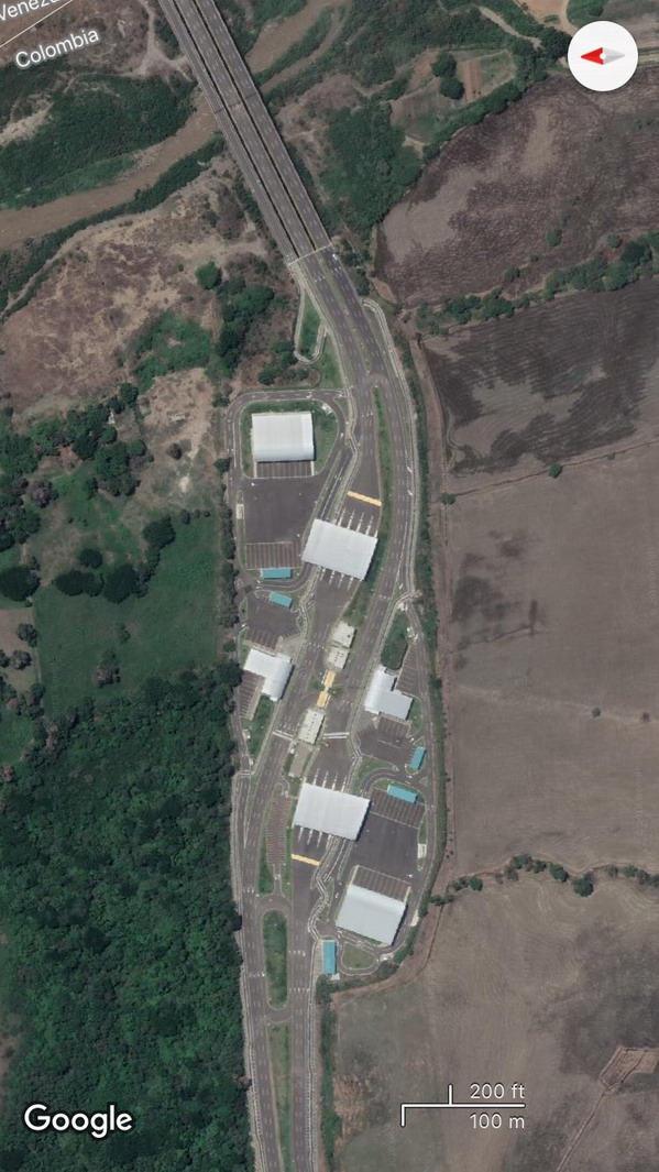 Lối vào Puente Binacional Tienditas ở Cúcuta, Colombia, nơi bộ chỉ huy viện trợ nhân đạo đã được thành lập bởi chính phủ Colombia.