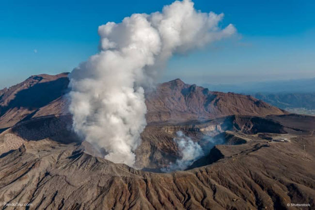 4. Núi Aso: Nếu du khách muốn khám phá núi lửa ở Nhật Bản, hãy đến khu vực núi Aso trên đảo Kyushu. Đỉnh Naka với dung nham nóng phun trào, thu hút rất đông du khách tham quan mỗi năm.
