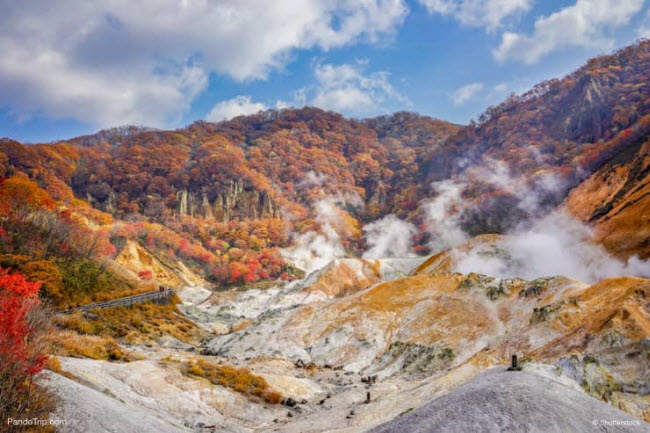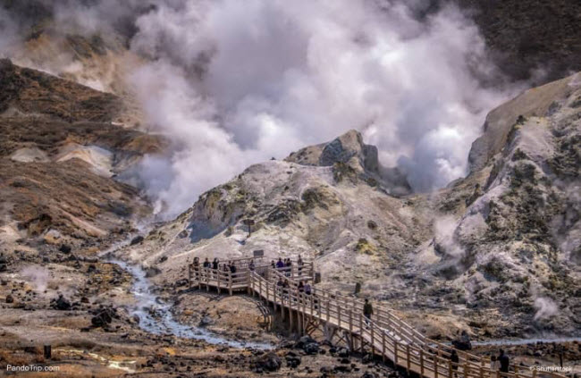 7. Thung lũng Jigokudani: Thung lũng Jigokudani là một miệng núi lửa cháy âm ỉ và được coi là một phần của địa ngục trên Trái đất. Nơi đây có các miệng phun lưu huỳnh và các hồ bùn.
