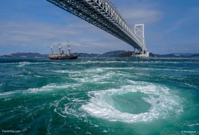 8. Xoáy nước Naruto: Nếu du khách muốn trải nghiệm cảm giác giống như bị mắc kẹt trong một trận lốc xoáy, hãy tới thăm xoáy nước Naruto ở Nhật Bản.