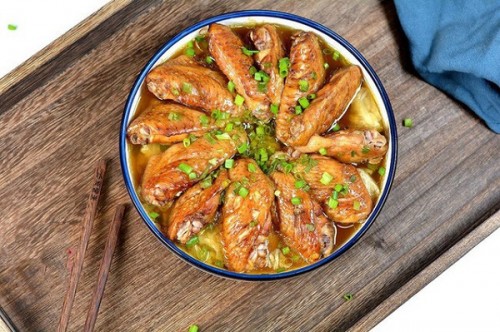 Đây là món ăn vừa đơn giản lại vừa ngon. ánh gà nướng theo kiểu này đảm bảo gà vừa chín tới, không bị khô. Khi ăn từng miếng cánh gà thấm đều gia vị quyện với phần rau sẽ giúp giảm cảm giác ngán ngấy.