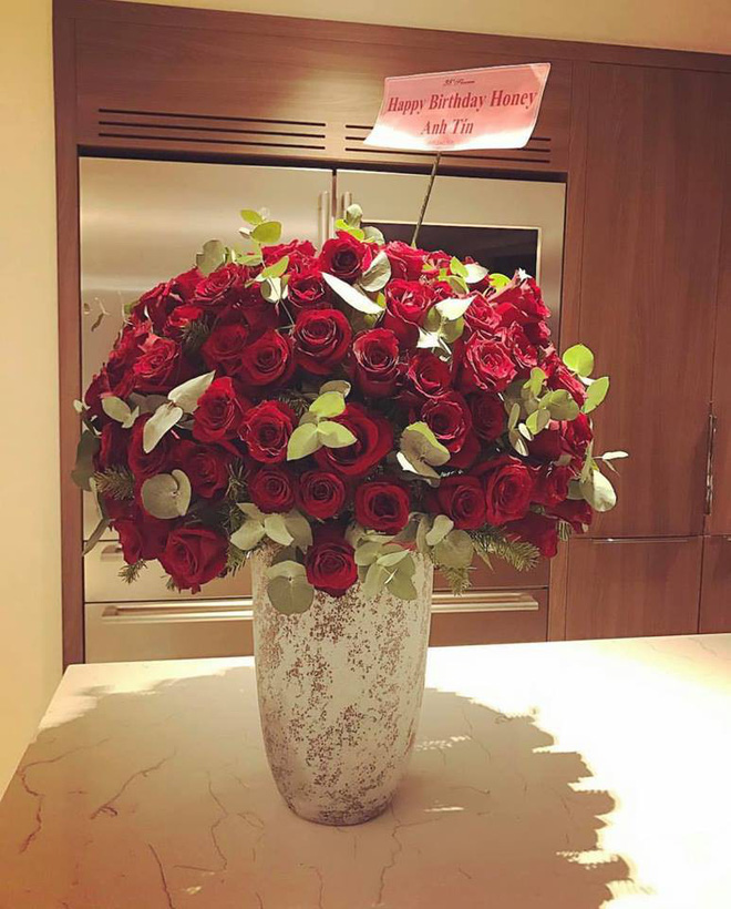 Một bó hoa doanh nhân Trung Tín tặng vợ được bày trong căn biệt thự.