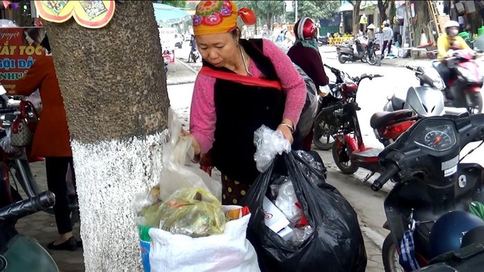 16 giờ chiều. Bà Tóm giặt khăn, lau rửa cho con trai rồi hôn, nựng con “ngủ đi để mẹ đi làm nhé!”. “Giờ ni sẽ có nhiều rác họ thải ra, đi muộn hơn mấy người thu gom họ chở đi mất”, bà Tóm quay sang nói với tôi. Rồi bà vớ lấy cái bao, lật đật đi ra đường...