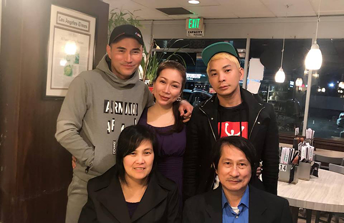 Leon Vũ và Andy Thái (bìa phải) gặp anh chị tư của nghệ sĩ Anh Vũ tại California (Mỹ) tối 3/4.