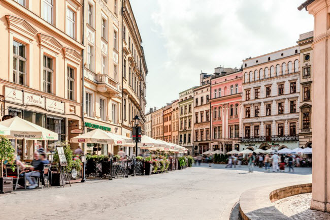 Krakow, Ba Lan: Quảng trường Rynek Glówny ở thành phố Krakow được coi là một trong những quảng trường đẹp nhất châu Âu. Các công trình ở đây phần lớn được xây dựng từ thế kỷ thứ 15. Thành phố cũng nổi tiếng với lâu đài Wawel được UNESCO công nhận là di sản thế giới và hơn 40 công viện.