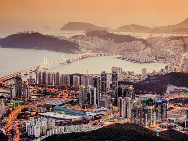 Busan, Hàn Quốc: Thành phố này được mệnh danh là Barcelona của Hàn Quốc, với nhiều bài biển dài và rộng cùng khu ẩm thực hấp dẫn. Du khách có thể chiêm ngưỡng toàn cảnh thành phố từ trên đồi cao, khám phá khu Gamcheon hay đền Haedong Yonggungsa.