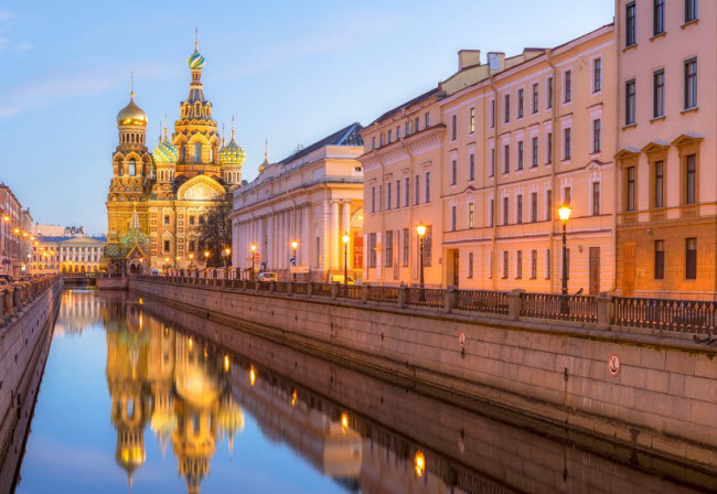 St Petersburg, Nga: Thành phố cổ kính của nước Nga nổi tiếng với những công trình kiến trúc theo phong cách Barôc như quảng trường Cung điện hay cung điện Mùa đông. Du khách cũng có thể khám phá nhà thờ Chúa Cứu thế trên Máu đổ.
