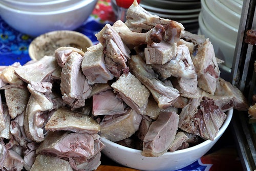 Thịt vịt được chặt miếng dày, mềm nhưng không bở.