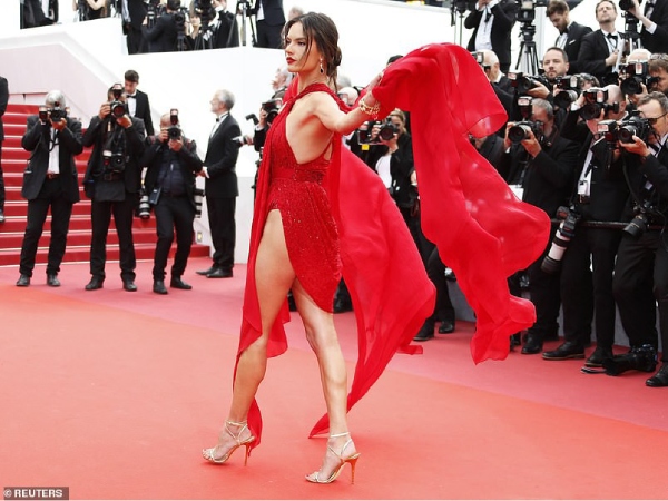 Thảm đỏ LHP Cannes ngày thứ hai đã diễn ra vào chiều 15/5 (giờ Pháp), quy tụ nhiều ngôi sao lớn tham gia công chiếu bộ phim Les Misérables. Đặc biệt gây chú ý giữa dàn sao là siêu mẫu Brazil - Alessandra Ambrosio với một bộ trang phục đỏ rực rỡ, cắt xẻ táo bạo. Nữ siêu mẫu khoe thần thái cao sang trong chiếc váy lụa chiffon của Julien Macdonald và đi đôi xăng đan ánh kim có cái tên "Ellie" của Giuseppe Zanotti.
