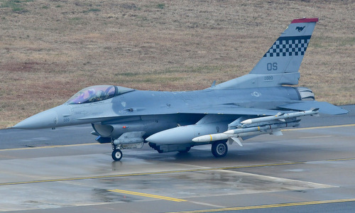 Một tiêm kích F-16 Mỹ mang vũ khí và thùng dầu phụ. Ảnh: USAF.